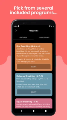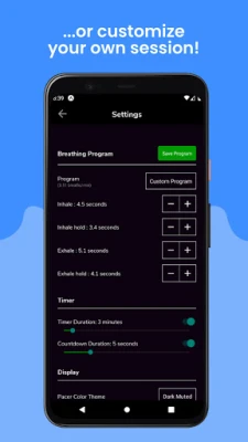 Awesome Breathing zeichnet sich durch seine beispiellose Anpassungsfähigkeit aus. Passen Sie die Dauer des Einatmens, Ausatmens und optionaler Pausen exakt an Ihre Bedürfnisse an. Ob Sie vordefinierte Techniken wie die beruhigende Box-Atmung, die schlaffördernde 4-7-8-Methode oder die ausgleichende Gleichatmung bevorzugen, alles ist sofort verfügbar. Darüber hinaus können Sie Ihre ganz persönlichen Atemprogramme erstellen und speichern. Die Sessions können unbegrenzt oder zeitgesteuert bis zu 30 Minuten dauern, um sich perfekt in Ihren Tagesablauf einzufügen und eine klare, entspannende Erfahrung zu garantieren.