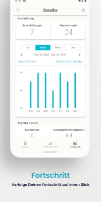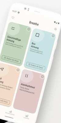 Entdecke Breathe, die innovative App für Achtsamkeit und Entspannung. Sie bietet 3 Standard-Atemübungen und lässt Dich persönliche Atemmuster kreieren, um Stress abzubauen und Deine Konzentration zu verbessern.