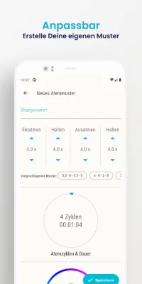Tauche ein in bewährte Atemtechniken wie die Gleichmäßige Atmung, die dich sanft zentriert, oder die effektive Box-Atmung, eine bewährte Methode zur schnellen Stressreduktion. Für erholsamen Schlaf sorgt die 4-7-8-Atmung, die als natürliches Beruhigungsmittel dein Nervensystem harmonisiert und dich in einen Zustand der Gelassenheit führt. Darüber hinaus kannst du mit unbegrenzten benutzerdefinierten Mustern deine ganz persönlichen Atemschemata erstellen und diese präzise bis auf eine halbe Sekunde genau einstellen, um sie perfekt an deine Bedürfnisse anzupassen.