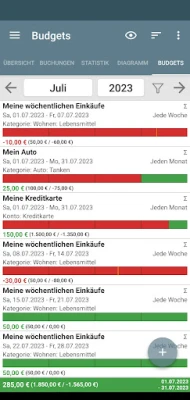 Mit dem flexiblen Budget-Modus von Mein Haushaltsbuch setzen Sie sich mühelos individuelle finanzielle Leitplanken. Definieren Sie beispielsweise ein wöchentliches Limit für alltägliche Ausgaben oder ein monatliches Budget für spezifische Kategorien wie Tankkosten. Sie können auch maximale Ausgaben für bestimmte Konten oder Kreditkarten festlegen, um bewusster zu konsumieren und bares Geld zu sparen. Bei wiederkehrenden Budgets entscheiden Sie selbst, ob nicht genutzte Beträge verfallen oder intelligent in den nächsten Zeitraum übertragen werden, um Ihre Sparziele optimal zu unterstützen.