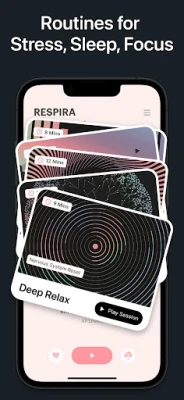 Entdecken Sie RESPIRA, die Atemübungs-App, die Ihnen hilft, Stress abzubauen, die Konzentration zu steigern und den Schlaf zu verbessern. Mit geführten Sitzungen und immersiven Klangwelten nutzen Sie die Kraft Ihres Atems für Ihr geistiges und körperliches Wohlbefinden.
