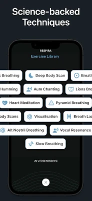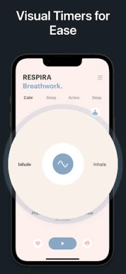 Die App RESPIRA integriert intuitive Funktionen, die Ihre Atemübungen revolutionieren. Tauchen Sie ein in synchronisierte Atem- und Klanglandschaften, bei denen speziell kuratierte Audioerlebnisse und psychoakustische Musik Ihre Entspannung vertiefen und Achtsamkeit fördern. Gestalten Sie mit dem präzisen Kadenz-Timer Ihre ganz persönlichen Atemroutinen, ergänzt durch funktionale Klänge, beruhigende Naturgeräusche und gezielte Gehirnwellenfrequenzen. Visuelle Meditationshilfen, wie schwebende Atemblasen und friedvolle Szenarien, unterstützen Sie zusätzlich dabei, Ihren Geist zu fokussieren und innere Ruhe zu kultivieren.