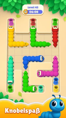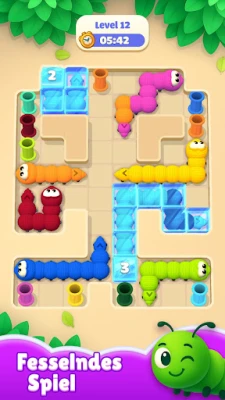 Tauchen Sie ein in die fesselnde Welt von **Wurm Schleichen Puzzle**, einem cleveren Denkspiel, das Ihre Logik und Präzision herausfordert! Ihre Aufgabe ist es, einen flinken Wollwurm durch ein verschlungenes Labyrinth zu manövrieren. Jede Kurve, jeder Gang muss sorgfältig geplant werden, um den optimalen Pfad zu finden. Führen Sie den Wurm geschickt durch enge Passagen und um knifflige Hindernisse herum, um seine farblich passende Spule zu erreichen. Es ist eine faszinierende Reise, bei der das Entwirren des Weges ebenso befriedigend ist wie das Lösen des Rätsels selbst.