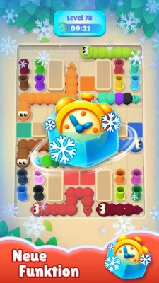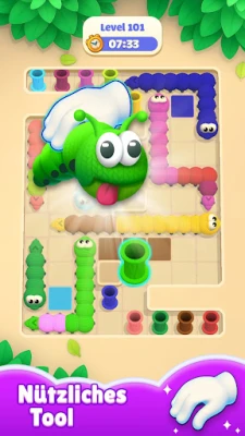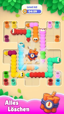 Das Herzstück von **Wurm Schleichen Puzzle** liegt in der eleganten Mechanik: Sobald Ihr Wurm die korrekte Spule derselben Farbe erreicht, wickelt er sich in einer wunderschönen, flüssigen Animation darauf auf. Doch die Zeit ist Ihr ständiger Begleiter und Herausforderer. Jede Sekunde zählt, während Sie gegen die tickende Uhr antreten, um das Level zu vollenden. Dieses Element der Geschwindigkeit fügt dem strategischen Gameplay eine aufregende Dynamik hinzu, die sowohl schnelles Denken als auch vorausschauende Planung erfordert.